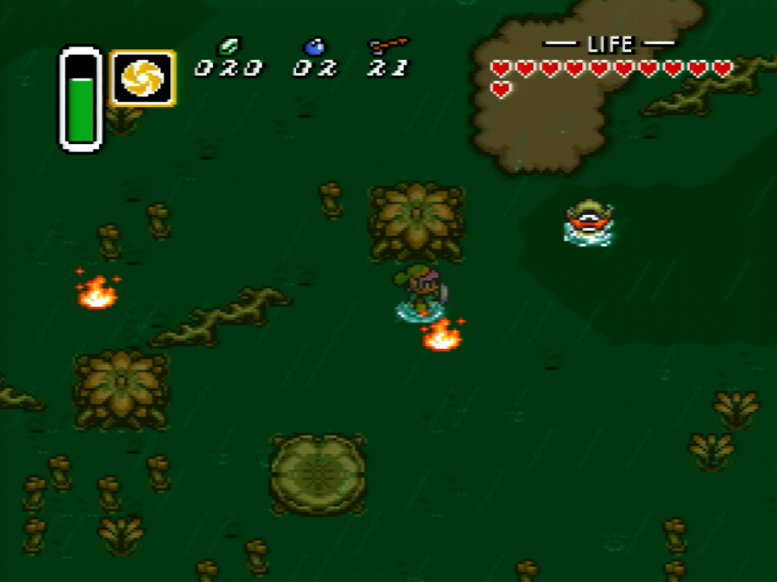 Si l'on utilise le Médaillon des Flammes, alors on verra effectivement une flamme se maintenir quelques secondes dans le vide puis disparaître, comme lorsqu'elle le fait avec un ennemi. Parfois, une bombe, ou un ensemble de 4 ou de 8 apparaissent. Alors, bug ? Ennemi invisible ? Easter egg ?