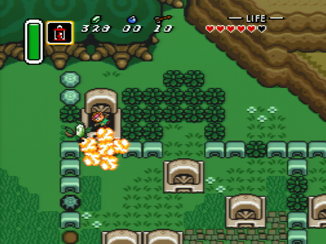 Une fois que vous avez récupéré les 225 rubis que vous donne la salle de Chris Houlihan et que vous la quittez, le jeu vous renvoie à l'entrée de la maison de Link. Ce n'est pas par hasard, car c'est le tout premier environnement de l'overworld qui vous est accessible dans le jeu et il le reste pendant toute la partie. Par conséquent, les développeurs se sont assurés que même si vous arrivez à déclencher le "bug" très tôt dans votre partie, en quittant la salle failsafe vous ne serez pas amenés à un endroit où vous n'êtes pas censés être.
