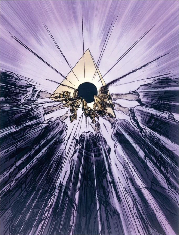 Ce lieu était un monde différent du monde duquel ils provenaient. Au coeur du crépuscule, brillait de couleur d'or la Triforce. il se dit que les bandits bousculèrent leurs compagnons, la couleur de leur yeux changea et tous se précipitèrent vers elle. A l'issue de cette scission sanglante, seul le chef des bandits survécut. Dès lors qu'il toucha la Triforce de ses mains souillées de sang encore frais, l'esprit de l'artefact lui murmura alors :