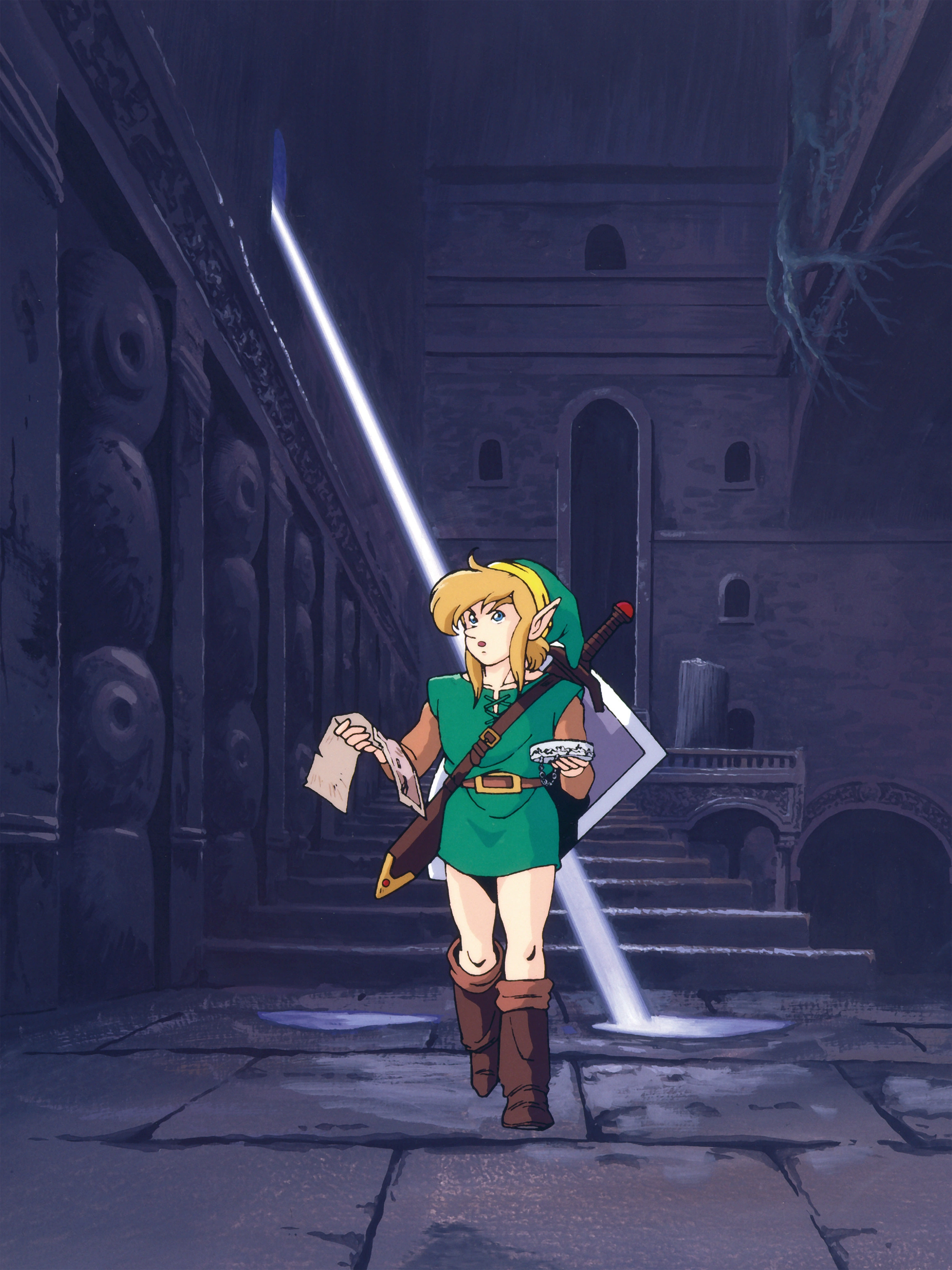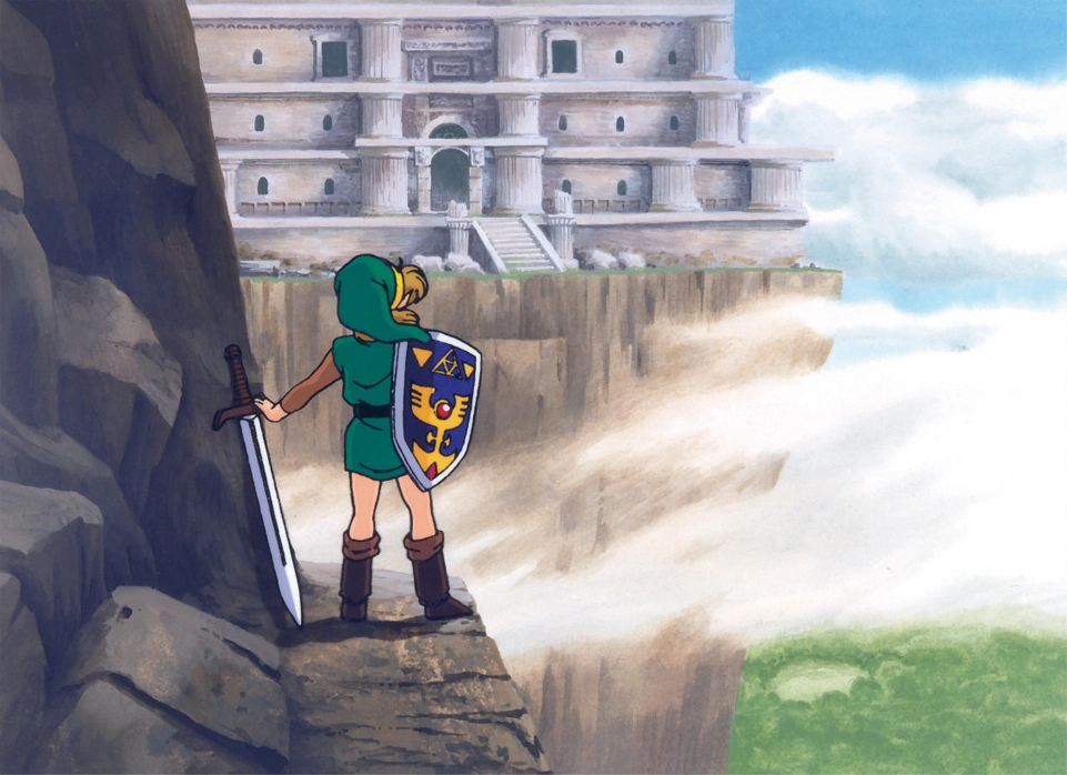 Ainsi, lorsque l'oncle de Link quitte la maison, ce dernier peut se lever de son lit, pour se diriger dans le château où est retenue la fameuse Princesse Zelda qui l'a interpellé dans son sommeil. Cependant, des gardes vigilants sont placés de manière à ne pas rendre l'accès au château facile. Link trouvera donc, à côté de la muraille, un passage souterrain menant aux jardins intérieurs du château. Dans ce passage, il croisera son oncle, agonisant, lui transmettant son épée et son bouclier. Ainsi, Link est paré pour la suite de son aventure.