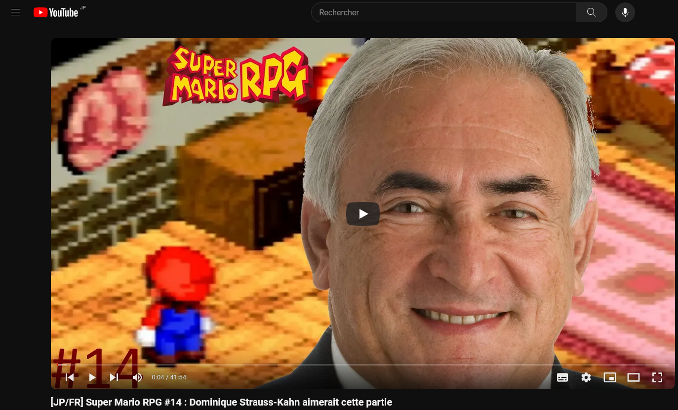 Si la quasi-totalité des let's plays que je tourne sont faits en live sur Twitch puis (quand j'ai pas la flemme de le faire) exportés sur Youtube, ce n'est pas le cas pour celui-ci qui, à l'instar du let's play sur Chrono Trigger, est du contenu exclusif Youtube, toutes les vidéos ont donc été enregistrées en avance via OBS puis postées uniquement sur Youtube. Le let's play de Super Mario RPG, J-RPG oblige, est l'un de mes plus longs, et s'étale sur 39 vidéos d'une durée qui oscille entre 40 et 50 minutes, parfois un peu plus. Mention spéciale à la dernière partie qui fait presque 2h ! Ci-dessous la playlist Youtube associée. Enjoy !
